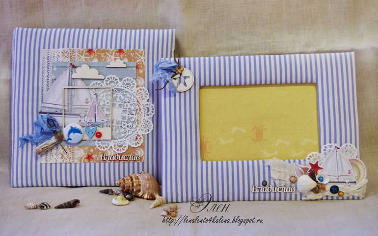 Я сегодня с морским комплектом для мальчика! Он состоит из альбома формата 20х20 см. и рамочки для фото.