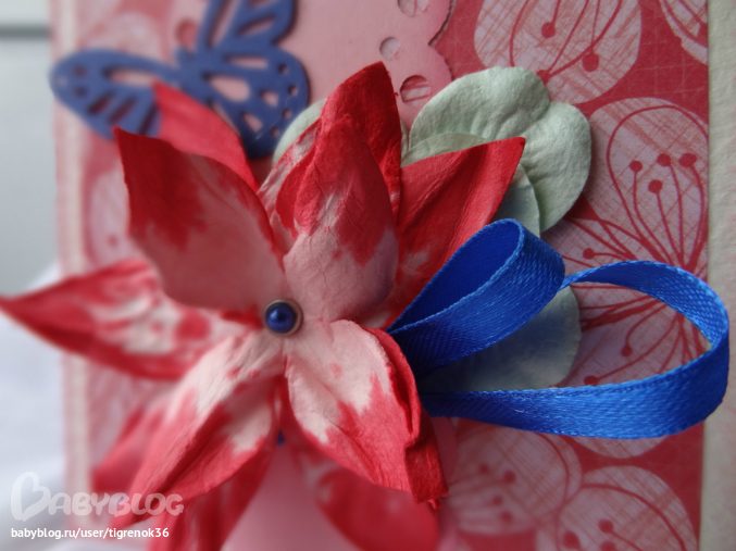 цветок самодельный, как-то нашла МК на просторах интернета, но ссылки не сохранилось(( Надо вырезать из акварельной бумаги листики(шаблон), скрутить их, намочиь и мокнуть в чернила(краску), дать высохнуть...вот результат(но я не совршенствовалась пока, делала 1 раз всего)))