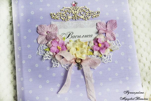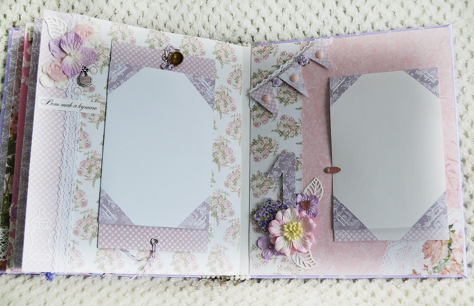 Сегодня хочу показать альбом для новорожденной девочки Василисы.Получился он нежный,розово-сиреневый с множеством секретиков.