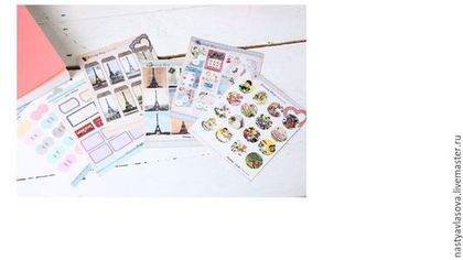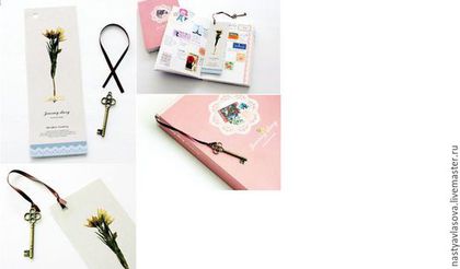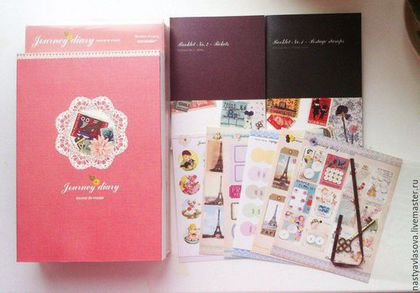 ежедник с цветыми страницами,2 книги с элементами для вырезания и декорирования блокнота,6 листов с наклейками,ключик металлический-закладка