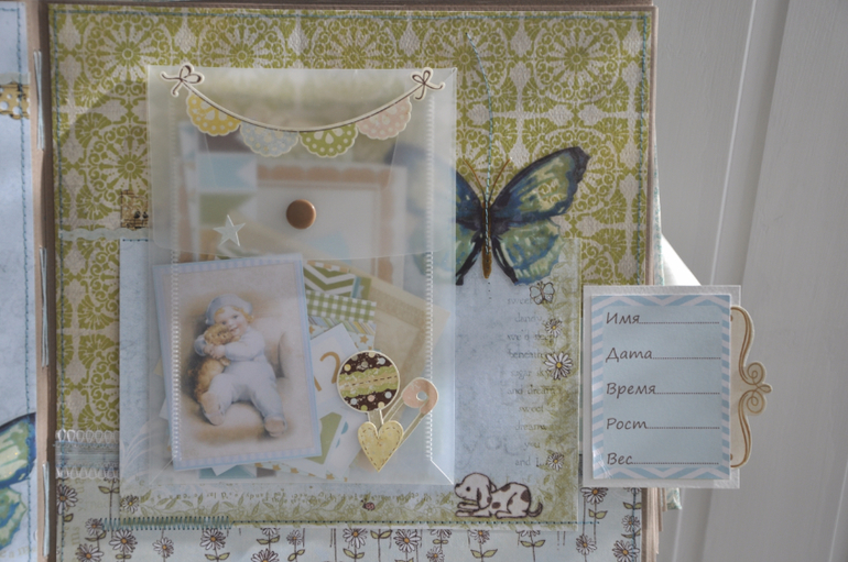 Альбомы ДетскиеНачинаю выкладывать свежие работы, которые сделаны в сентябре. Первой будет эта. Что вам сказать, все как обычно. Мой прошитый переплет , 20 разворотов = 40 страниц, 20 из которых полностью украшены. Этот альбом полностью готов, самозаполнение возможно только на пустых разворотах. Для того чтобы хозяйке было веселее, я прикладываю к альбому пакет с остатками декора. В первом развороте есть пластиковый конверт для хранения бирки и др. дорогих вещичек. Сейчас там листки с надписями, которые можно будет использовать при оформлении.