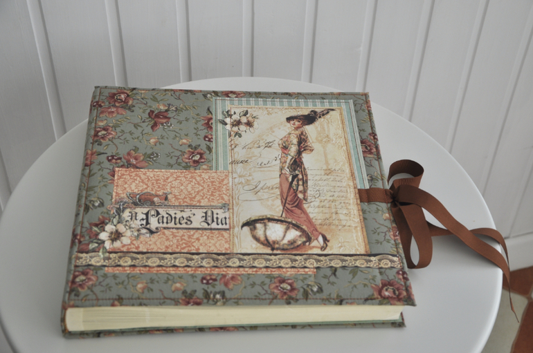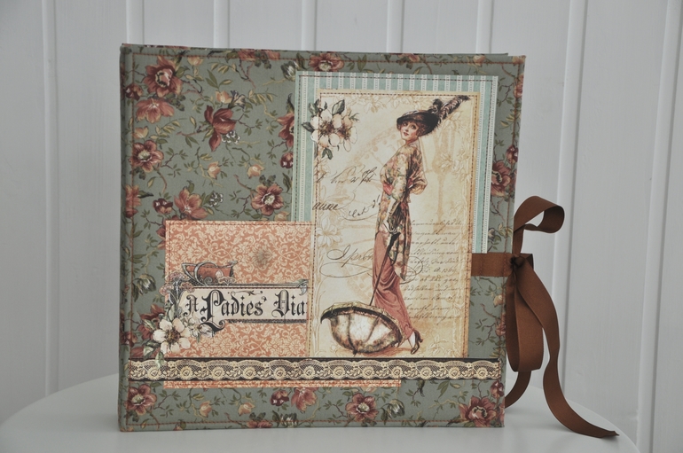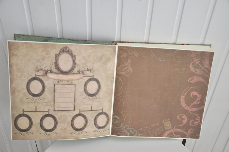 Обложка украшена бумажными аппликациями из бумаги Graphic45, ткань американского пр-ва. На первом развороте небольшое фамильное древо.
