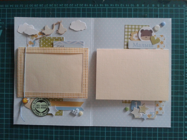 Вопросы-ответы, нужна помощь, поговорим о разном....Девочки, привет) Решилась я на свой второй альбом. Определилась с форматом - А5; нарезала все фоны, подложки....но как дошло дело до композиции. ...что-то не складывается у меня с этой бумажкой; как-будто чего то не хватает. В муках родился первый разворот, но не совсем он мне нравится. Выскажите свое мнение) как вам? Что убрать/добавить? Не напоминает детскую аппликацию?Буду очень признательна за ваши советы!