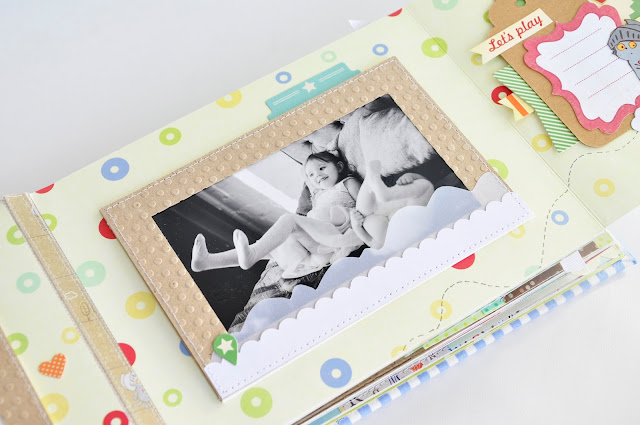 Еще в ход пошли вырезалки из листа Cosmo Cricket аж 2009 года выпуска (здесь кружочки Let's Go), и чипик Katrin Craft, который я выиграла в Мемуарисе в рамках 4 этапа Скрап-мамы.