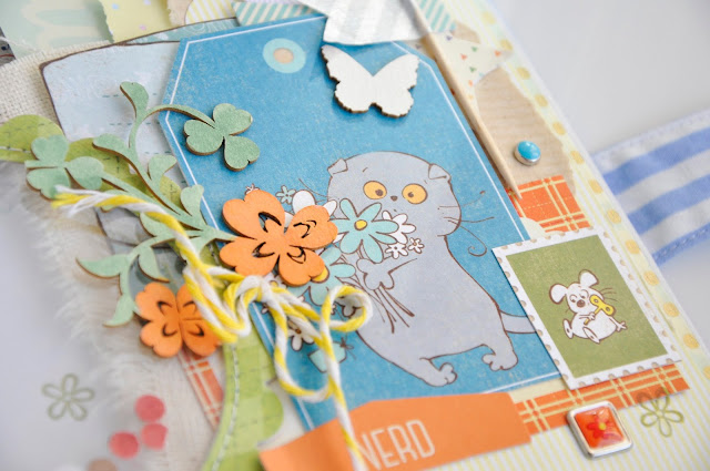 Приятно было с шебби, потертостей и всякой тканевой нежнятины окунуться в американку) Я вспомнила, как еще будучи в декрете прошла Скраповедение с Катей Погодиной и постаралась воплотить все пройденные уроки в жизнь - моя любимая многодетальность остается, добавляется немного паттернов, слоев и конфетти)