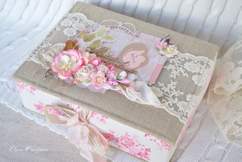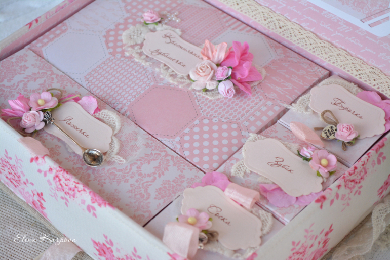 Хочу вам показать свою новую работу - мамины сокровища на годик для малышки Василисы. Размер 22х16,5х7,5, внутри 5 коробочек, место для фото, конвертик и метрика.