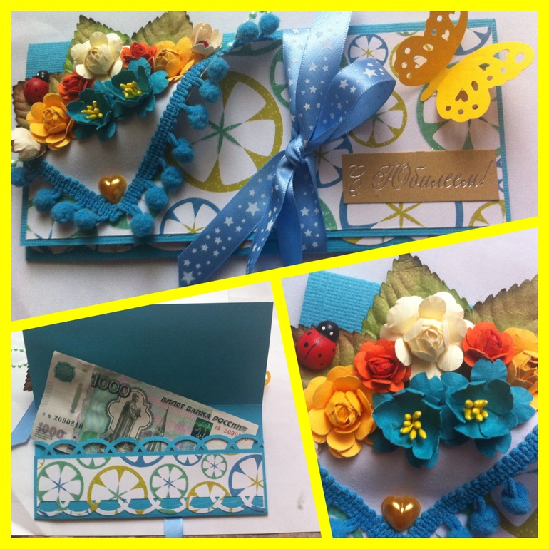 Конверты и коробки для денегЯ не супер пупер скрапер, занимаюсь им в свободное время, хотя у меня его очень мало((( да и материала в нашем городке маленьком нету. но всё же мне нравится . И вот сотворился такой конвертик для денег,а цветочки полностью ручная работа.