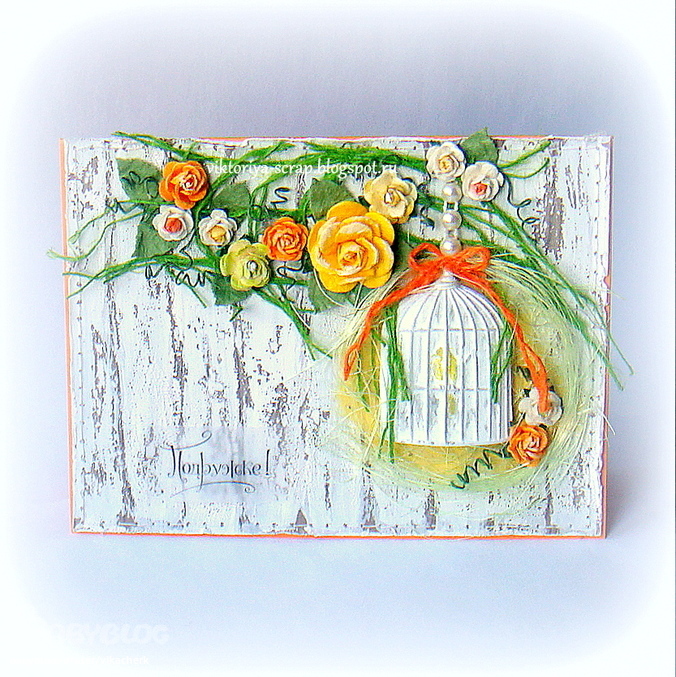 Надпись на открытке . Об остальных материалах и техниках, которые были применены в этой работе, Вы можете прочесть в .