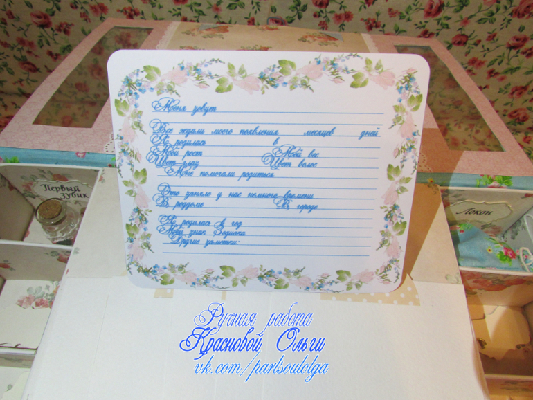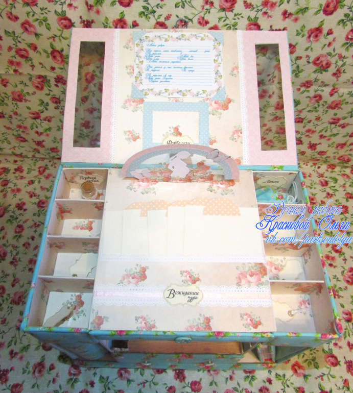 Большой комплект "Мамины и папины сокровища" Выполнен с нуля. Разработка макета,идеи и дизайна полностью мои, поэтому возможна модернизация по вашему желанию(удаление/добавление каких-то компонент, изменение формы и т.д.) В комплект входят: блокнот Будущей мамы(включает раздел по триместрам и много тематических, в т.ч. график роста,достижения ребенка и карточки для отпечатков). Альбом для фотографий по месяцам, Первый день рождения, Новый год, Моя семья и кармашек с доп.карточками для фото. В самой шкатулке есть 2 выдвижных ящичка, 8 отделений для для различных детских сокровищ, бутылочка для локона, мешочек для локона. На крышке Есть карточка с данными о ребенке, место для фото узи, 5 двухсторонних карточек для фото в период беременности.