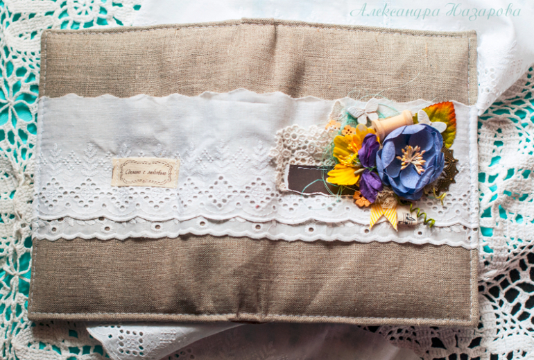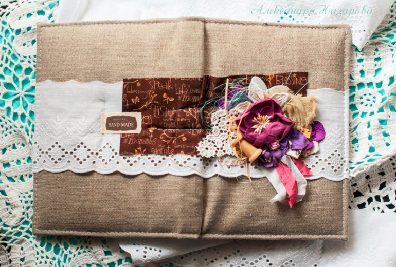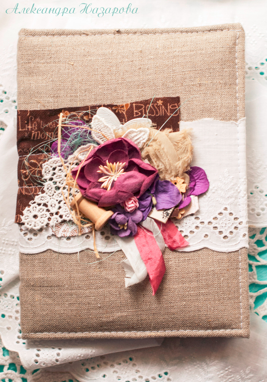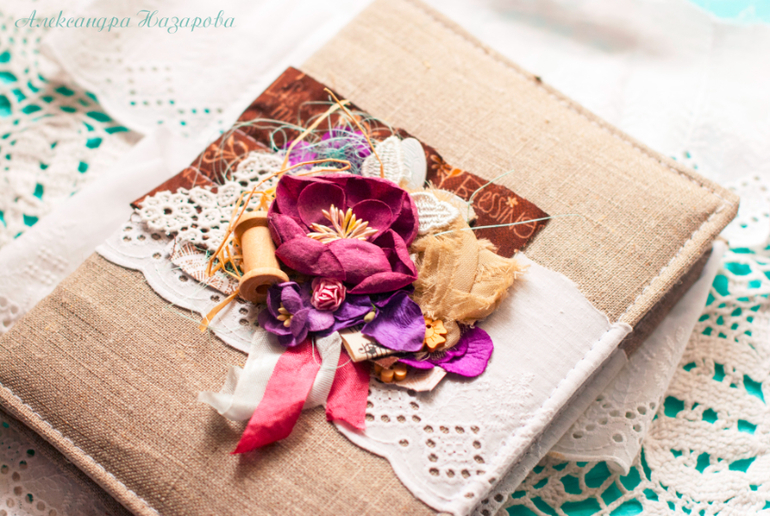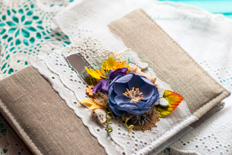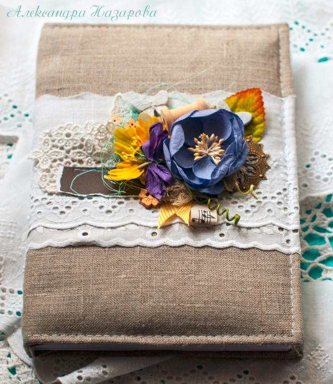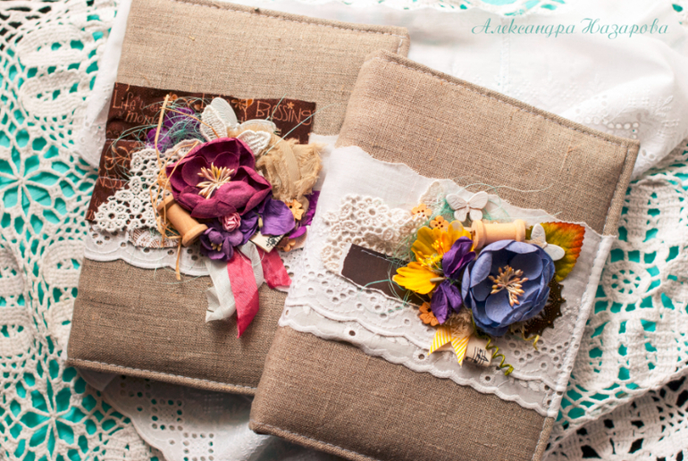 Из технических характеристик - блокноты А5, 100 листов, переплет, обложка натуральный лен. Из украшений - шитье, кружево, цветы и тд.