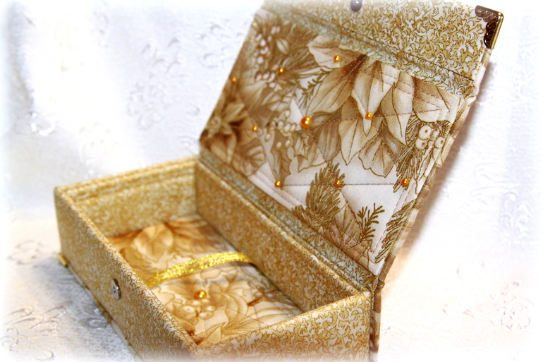Конверты и коробки для денегРодилась у меня вот такая шкатулка-купюрница. Делала просто по велению сердца))) Размер купюрницы 18*9 см, ткань с золотистым рисунком который не осыпается вообще, внутри и снаружи шкатулка проложена синтепоном и прострочена золотистой нитью. Рамочка чипборд украшена золотистой пудрой для горячего эмбоссинга.