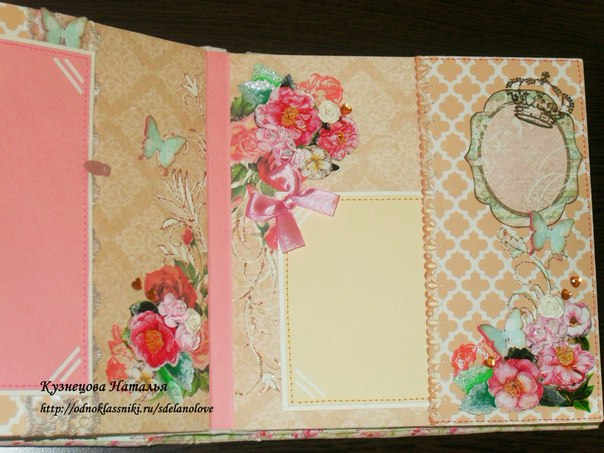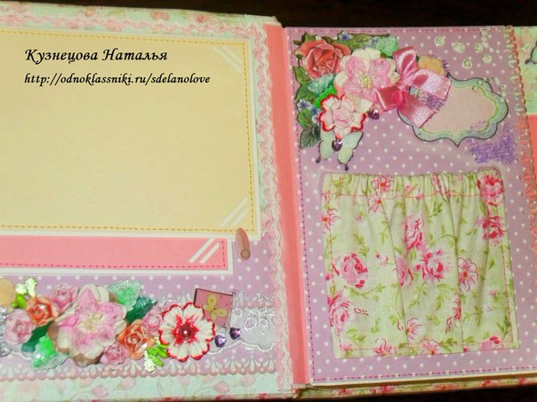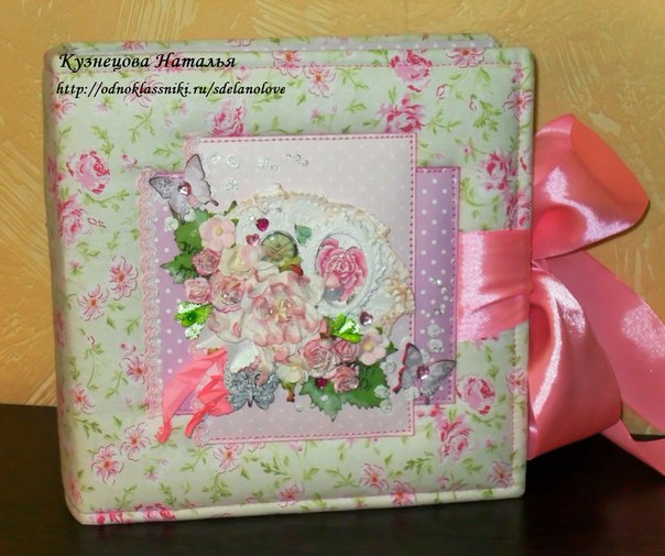 Альбомы других категорийАльбом в тканевой обложке на синтепоне формата 20Х20 см. Ручной переплет. В альбоме 6 разворотов (12 страниц), вмещает около 40 фото 10Х15. Завязывается на атласную ленту. Подложки с уголками для фото закрываются на анкеры. В альбоме множество декоративных элементов, имеются кармашки для дополнительных фото, записочек, карточек.