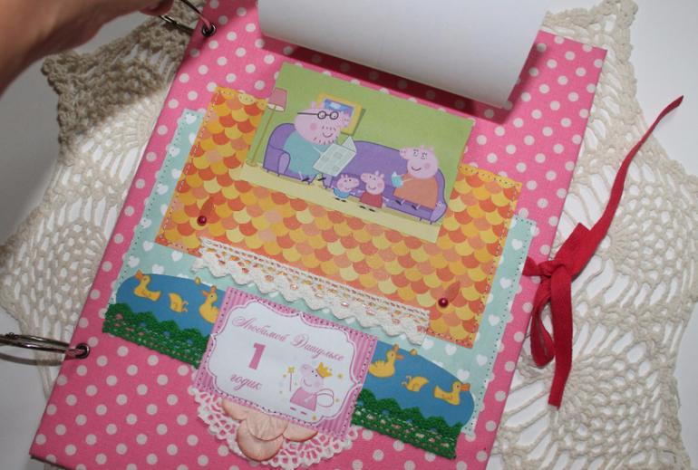 .Мама сама делает коллажи из фото по годам малышки ,распечатывает и вкладывает в файлы вот в такой альбомчик .Крепление на кольцах поэтому файлов и фото может быть ооочень много:)