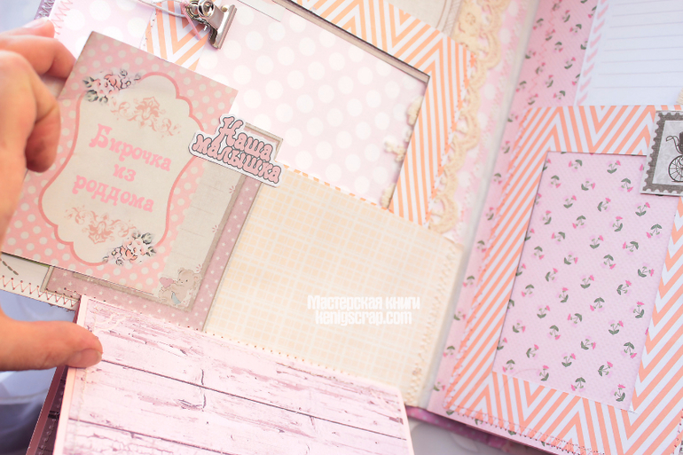 В альбом я включила зубную карточку, кармашек для фото узи, для бирочки и для локона. Также сделала побольше кармашков для тегов с журналингом.