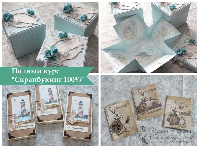 Курс состоит из 8 занятий по 3 часа. За это время мы делаем разные виды работ, изучаем стили и техники, знакомимся с материалами и инструментами. Курс сделан специально для новичков в этом виде творчества, которые хотят познакомиться со скрапбукингом и выбрать понравившиеся направления.