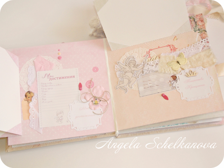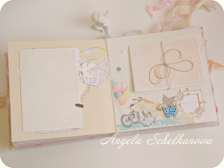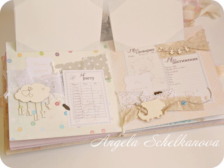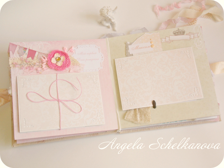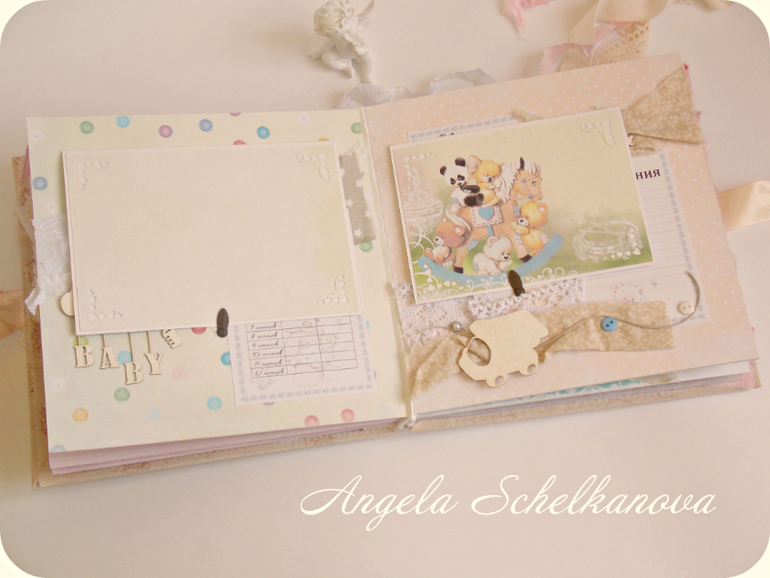 Альбомы ДетскиеПоявился на свет, разбавив мою нежную, воздушную, розовую стопочку работ, вот этот очаровательный не менее нежный альбомчик