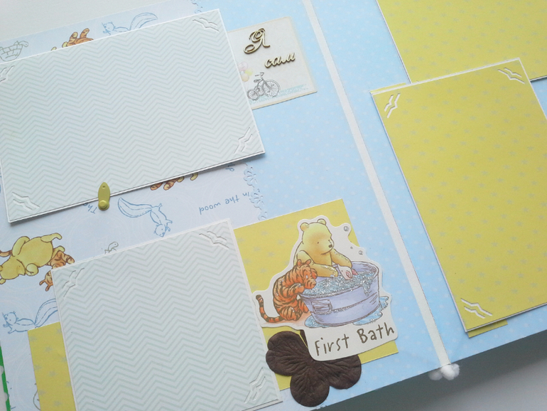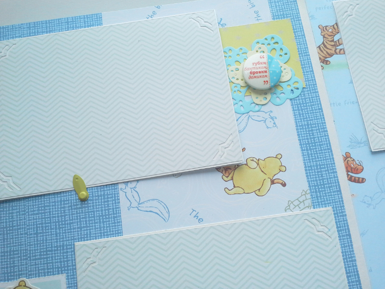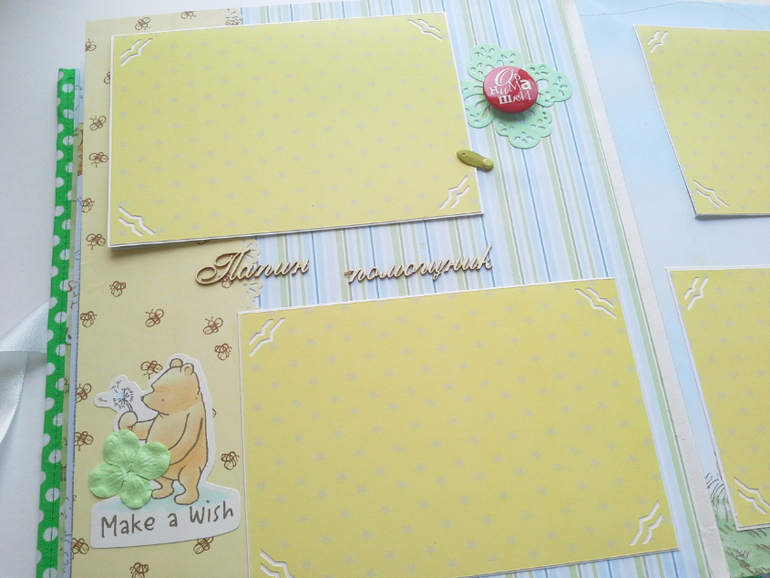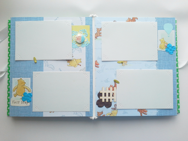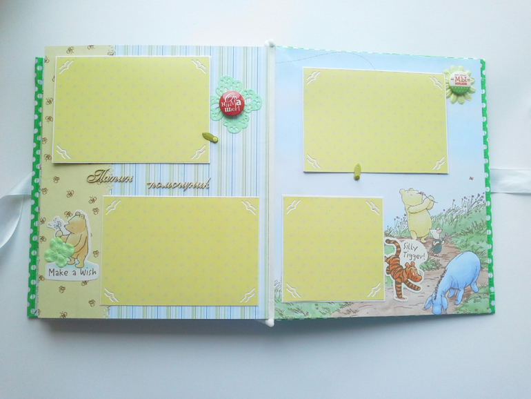 Альбом для мальчика Винни Пух. Размер 23х27 см, рассчитан на 48 фото 10х15 и 2 фото 10х10см. 6 разворотов. Использовано много надписей и забавных фишек.