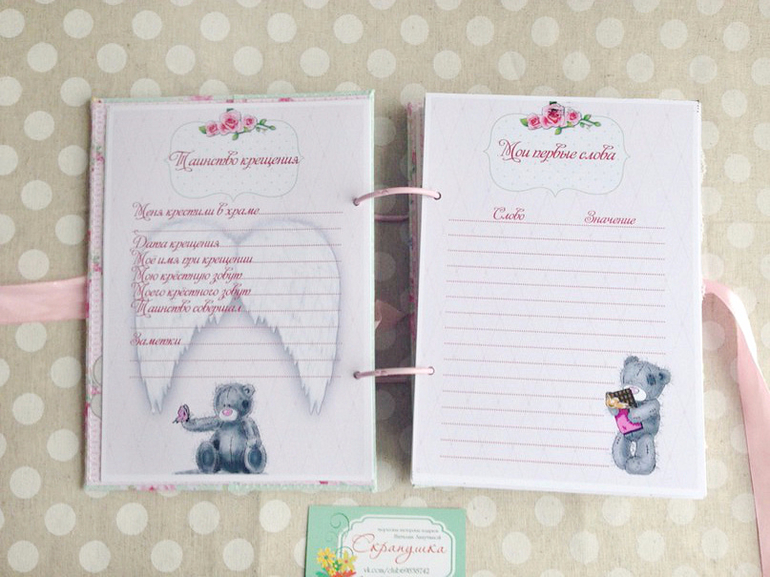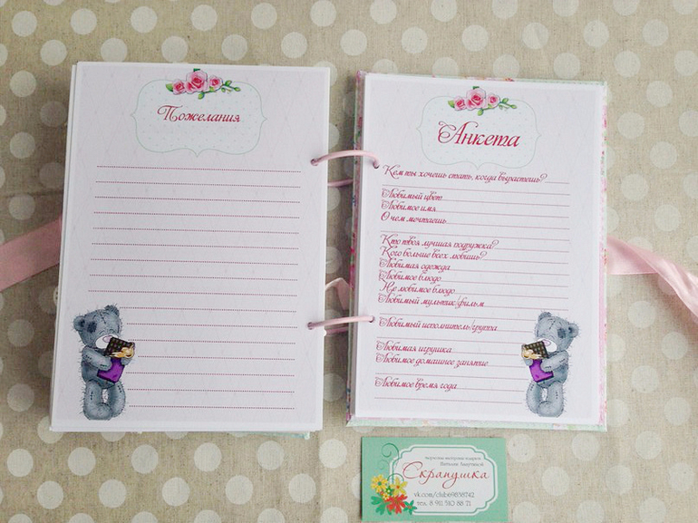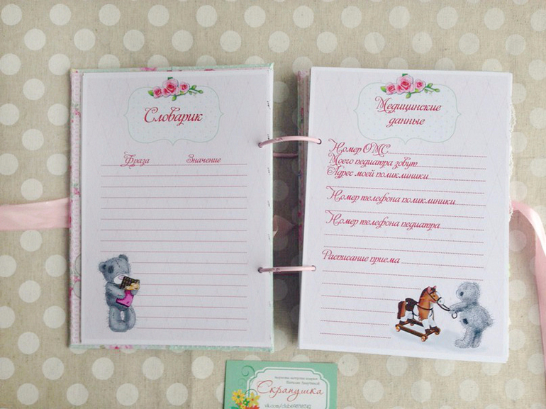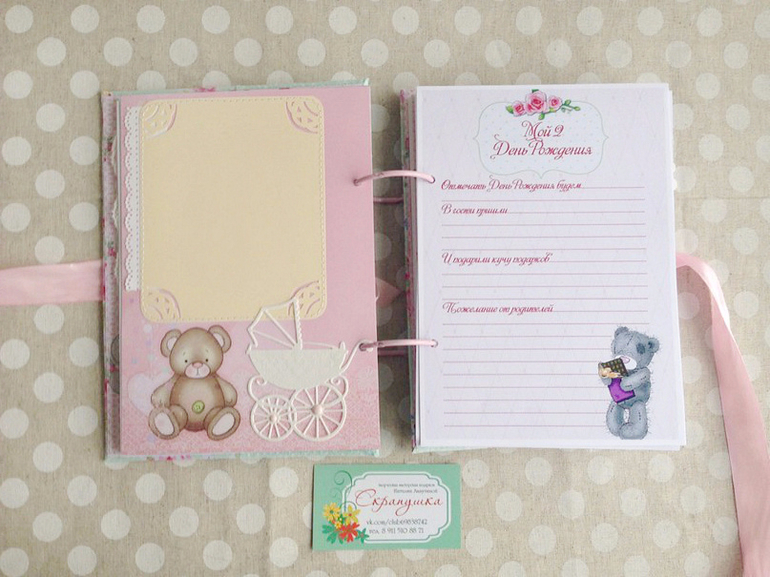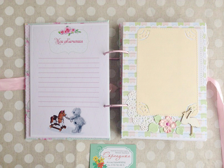 БлокнотыДобрый день всем!) Я к вам с маминым блокнотом, но не простым, а очень большим и вместительным) Около 100 тематических страниц, вмещает 60 фото 10х15 (10 разделителей с украшениями и 20 распечатаны на плотной фото бумаге), с 12 лет (т.к. дочке заказчицы уже 12лет) на каждый день рождения добавлена анкета, дополнительные странички создавались специально для этого блокнотика. Очень интересно услышать(увидеть) ваше мнение.