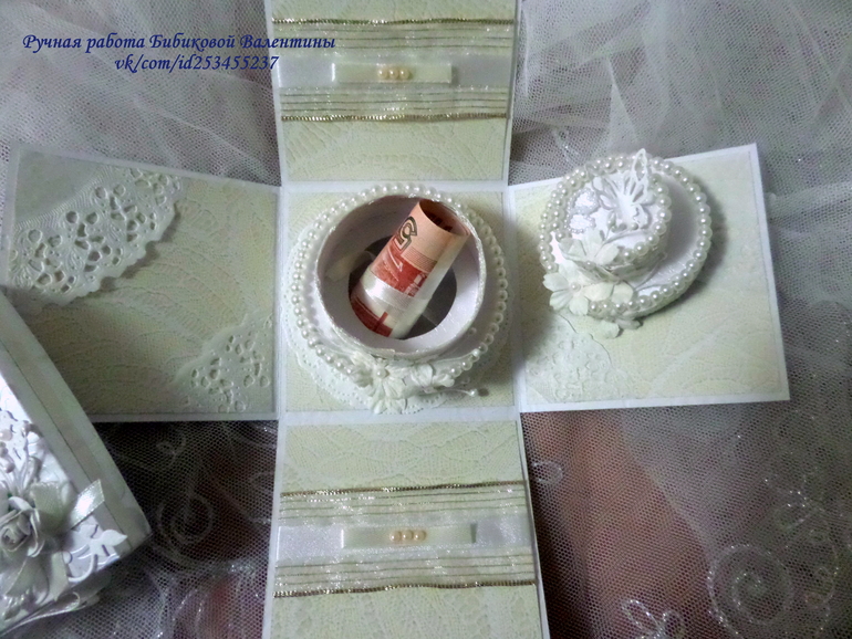 под ленточки можно вставить карточки с поздравлениями, а в салфеточки (как в фотоуголки) фотографии...или наоборот))
