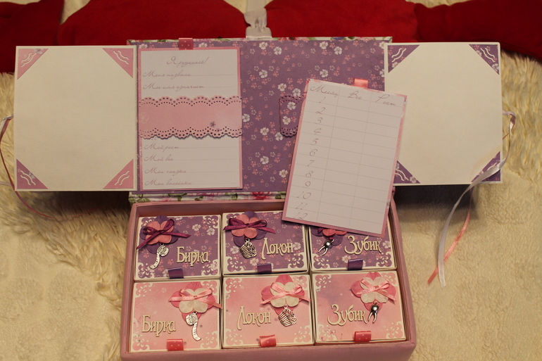 Коробки, шкатулки, комодыЗдравствуйте девочки! Я к вам с моей первой работой "Мамочкины сокровища" и "Первые документы" для двух маленьких девочек)))