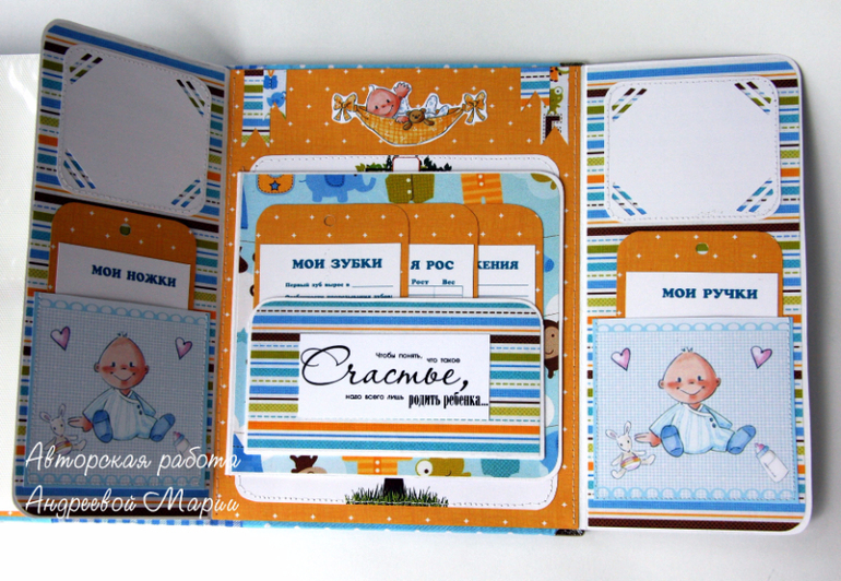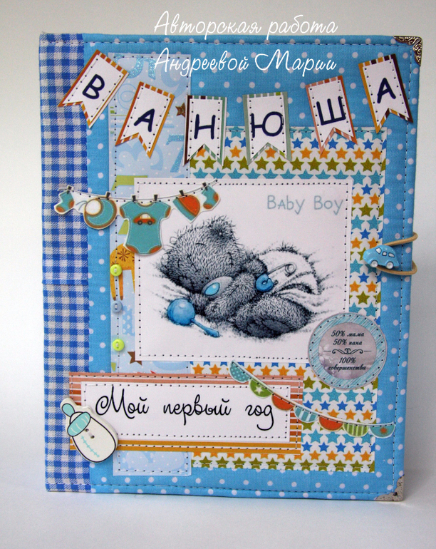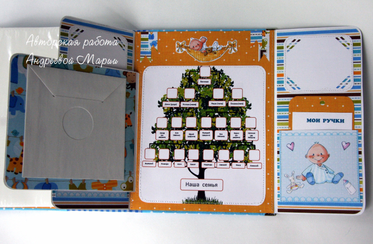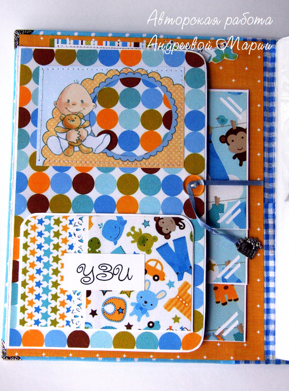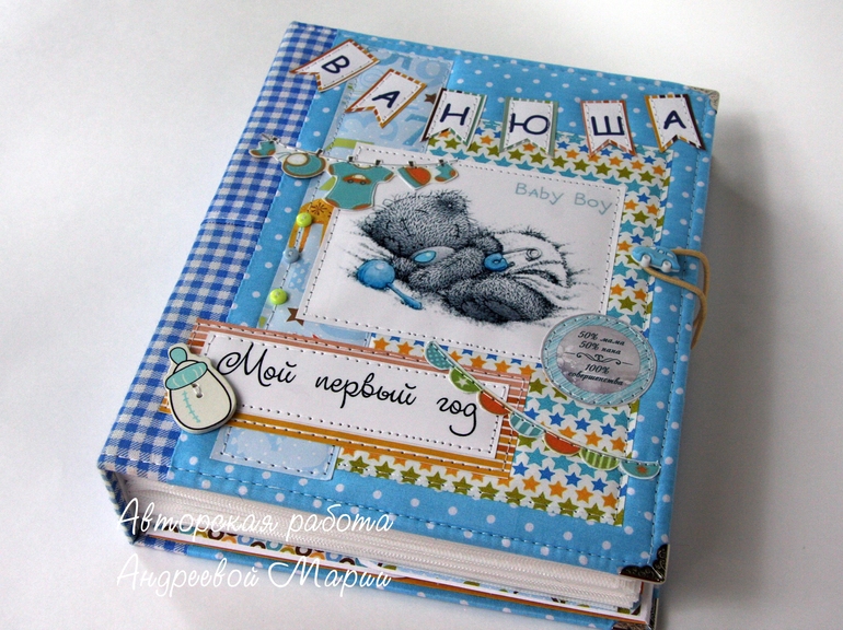 Альбомы ДетскиеАльбом для Ванечки. 200 фото. Обложка хлопок. Скрап форзацы. Есть кармашки для снимков УЗИ. бирочки, локона, зубика. Конверт для диска. На заднем форзаце генеалогическое древо семьи. Альбом уже приехал к своему хозяину. Спасибо Ксюше за заказ)))