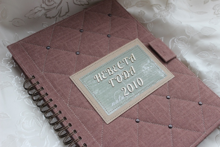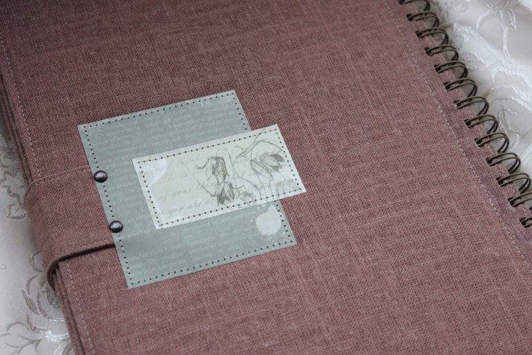 Для обложки выбрала лен (по-моему, неплохой выбор). Сделала каретную стяжечку с гвоздиками (вот прям полюбила я такие обложки, вдохновившись работами Вероника ).