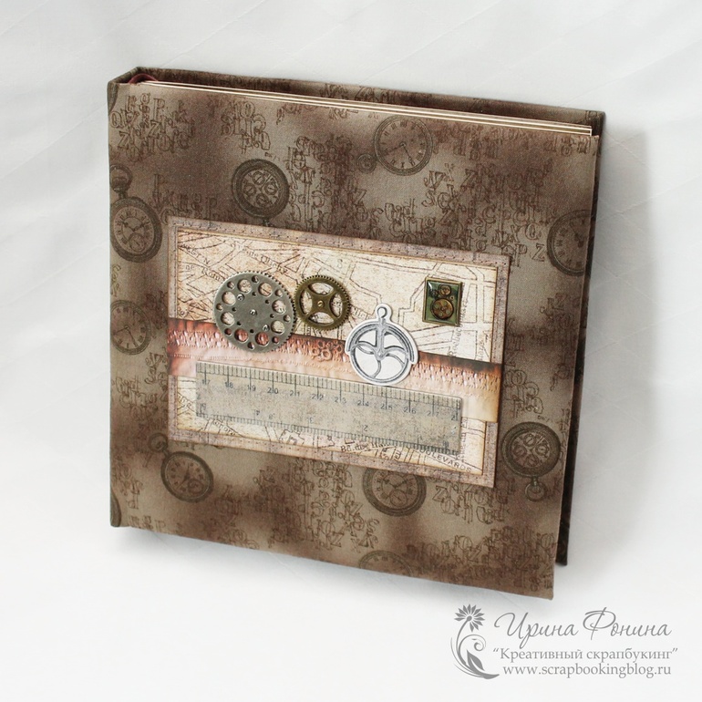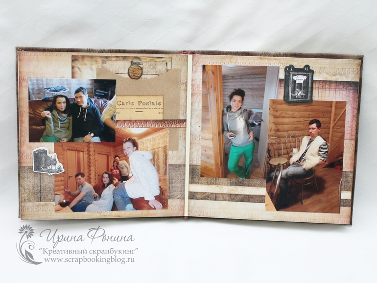 Этот альбом очень сдержанный и практически монохромный, потому что заказан был в подарок для мужчины. Но в нем нашлось место конвертам, тегам и кармашкам.