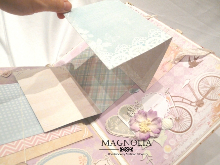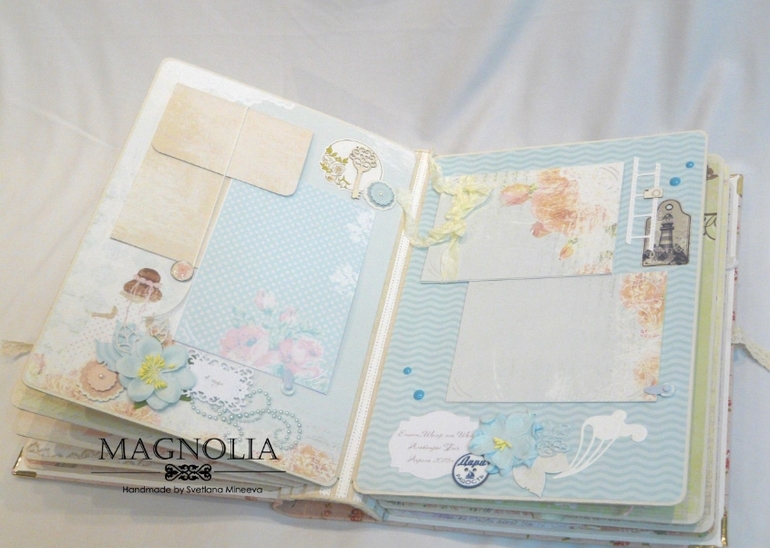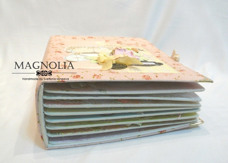 В этом альбоме я применила впервые для себя переплет по МК С. Ковтун. Видела в сети гуляет МК аналог, но на мой взгляд, результат очень отличается от того, если делать по МК Светланы. Ни капельки не пожалела, что выкупила этот курс , и всем советую:)
