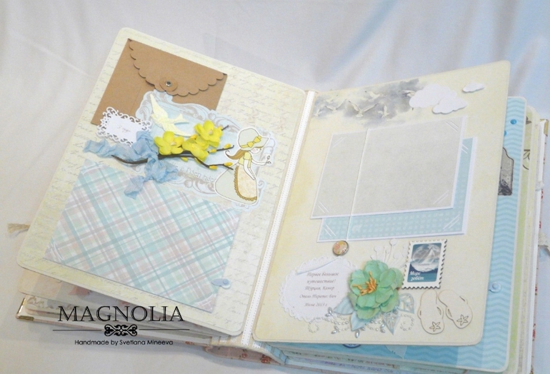 4 разворот для фото 3-го года, на 1 стр предусмотрен карман для фото, 2-ая страница посвящена отпуску на море