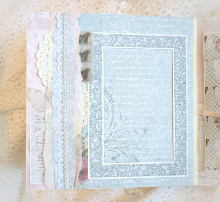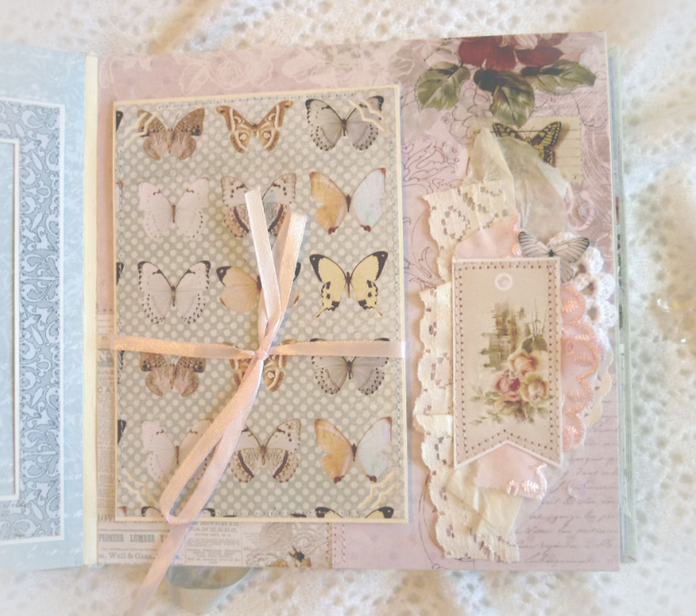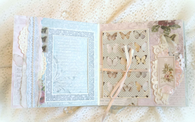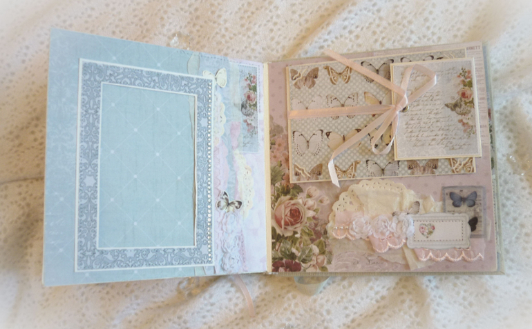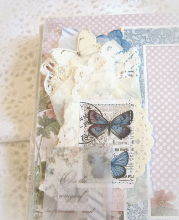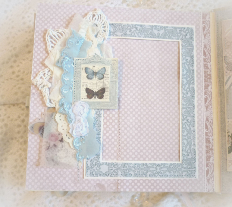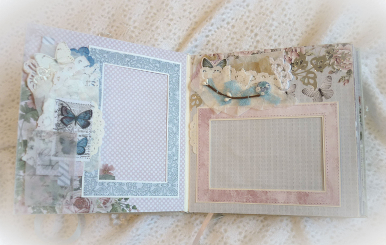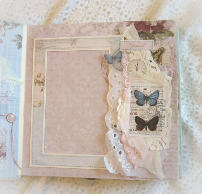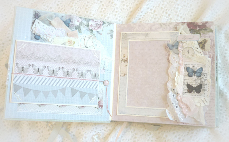 Мне очень нравятся бабочки, а когда увидела новую коллекцию от ScrapBerry's «Бабочки», то не смогла устоять и конечно же ее купила. Из нее у меня получился чудесный альбом, размером 20х20, на 6 разворотов, мягкая обложка обтянута натуральным льном, вмещает 20 фотографий 10х15.