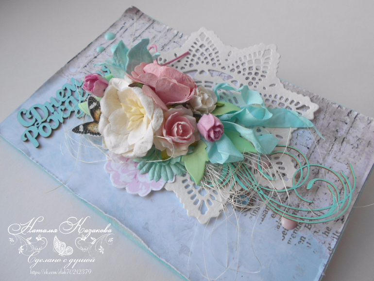 Открыточки делала на заказ для девушки, которая безоговорочно мне доверяет и заказывает уже далеко не в первый раз. Результат ей очень понравился, она довольна, но у меня всегда, как у не очень опытного скрапера в душу заселяются сомнения по поводу результата работы.