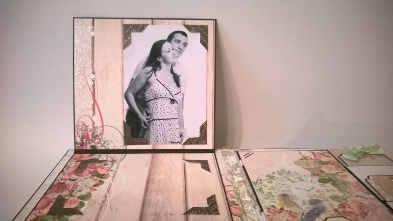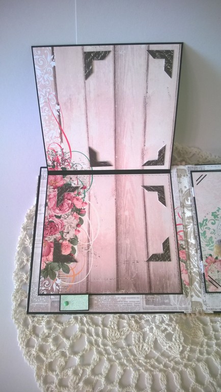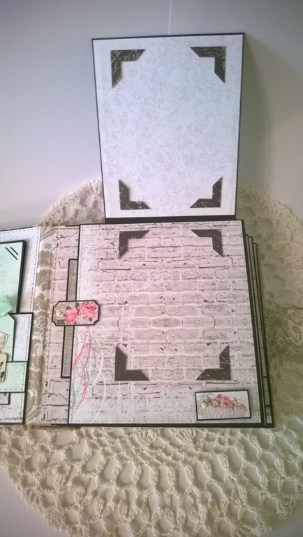 На 2 странице подложка в виде рамочки, поднимаем ее и видим черные уголки (сама сделала) еще для двух фото.