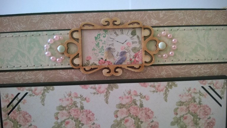 На 1 страничке деревянная рамочка с птичками и часиками:
