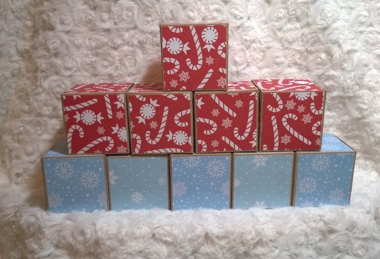 1. Сегодня мы сделаем 10 штук коробочек. Размер у них 7х7см, 5х5см или 7х5см и высотой 2-3см. Они подойдут для объемных конфеток и подарков. Выкройку коробочки вы можете скачать здесь. Выбираем размер по цвету, вырезаем по сплошной и по пунктирным складываем.
