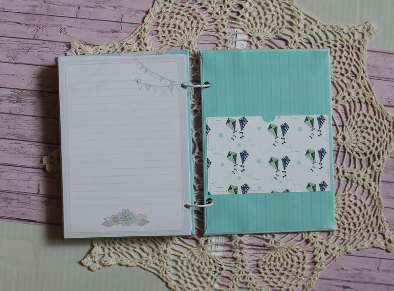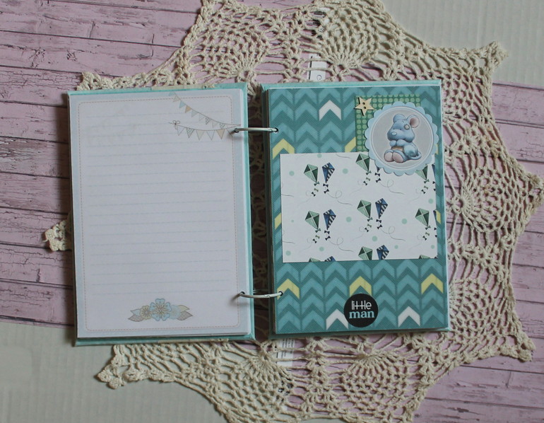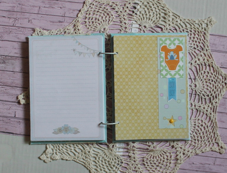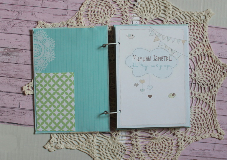 +можно разместить 20-30 фото (в зависимости от выбранного формата блокнота) малыша на плотных страничках.