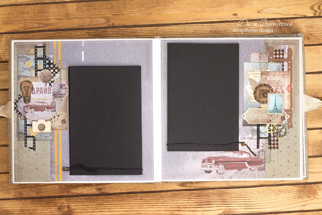 Фотоальбом формата 20х20 в стиле винтаж на 5 разворотов вмещает 39 фото. Фотографии вклеиваются на подложки при помощи двустороннего скотча или клея-карандаша.