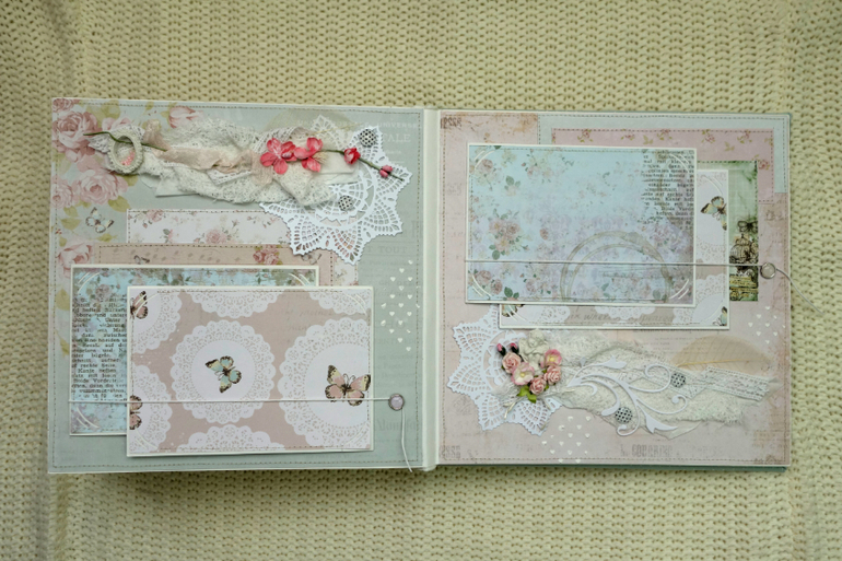 Альбомы для женщин (девушек)Всем привет. Очень понравился недавно прошедший СП "Нежный альбом " с Татьяной Лысенко. И вот по его следам так сказать , я сделала свой альбом , который назвала "Леди шеби" . Альбом размером 25х25 см из одноименной бумаги от Скрап мира "Леди шеби". В альбоме 6 разворотов , 43 фото 10х15. Использовала в работе много кружева (спасибо Елене) , много шитья , цветов, бисера , чипборда, гипсовых фигурок,пуговичек.