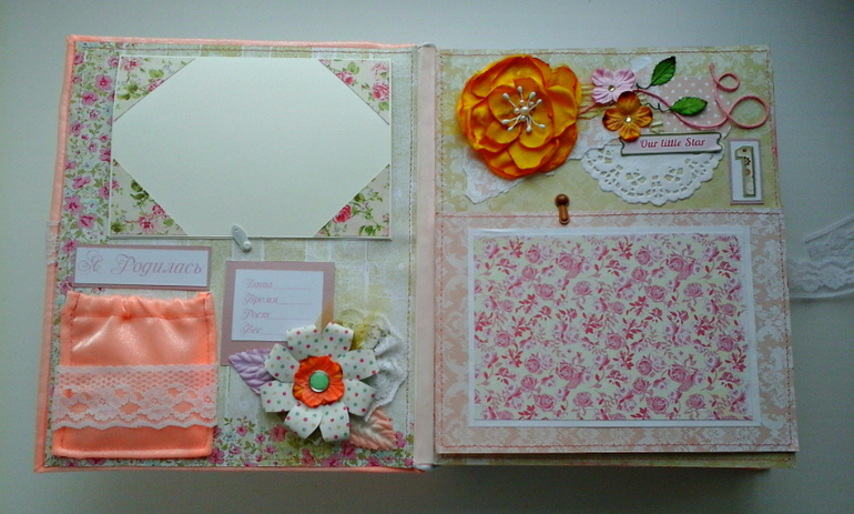 Всем здравствуйте! Продается альбом ручной работы первого года жизни для девочки, выполненный в технике скрапбукинг. Размер 20*25 см, вмещает более 60 фото различного формата, есть раскладные элементы, кармашки для фото, карточки для памятных записей, тканевый карман для бирочки из роддома и много украшений. Альбом в мягкой тканевой обложке, в переплете. Все листы прошиты на машинке, они не гнутся (внутри картон 1,5 мм). Возможно изготовление подобного альбома на заказ на любую тематику.На обложке есть рамочка для вклеивания имени малышки. Каждая страничка посвящена одному месяцу жизни ребенка. В альбоме 6 разворотов. Стоимость 2600р