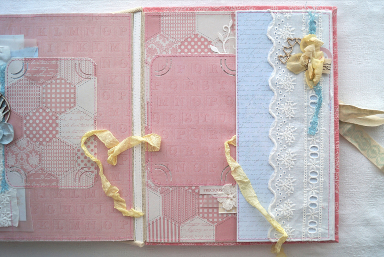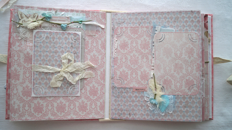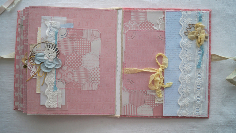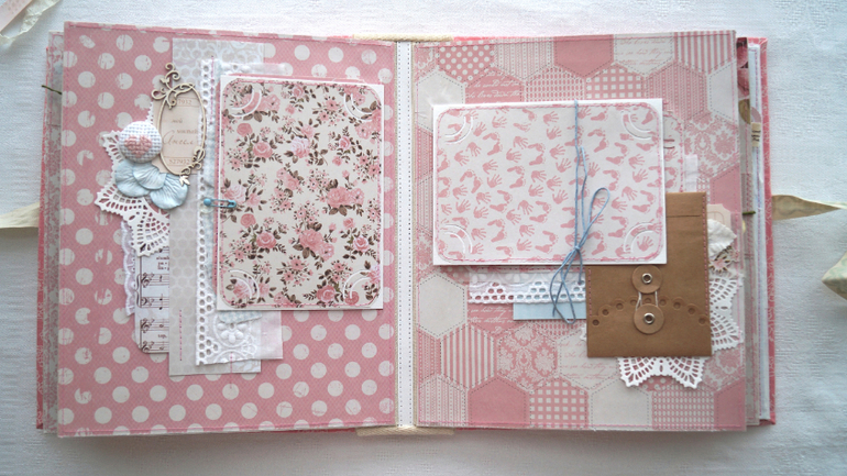 У меня готов новый альбом для девочки, нежный и воздушный) Альбом форматом 20х25, 5 разворотов, вмещает 22 фото 9х13 и есть текстильный карман для дополнительных фотографий) Идеальный переплет от Светочки Ковтун)