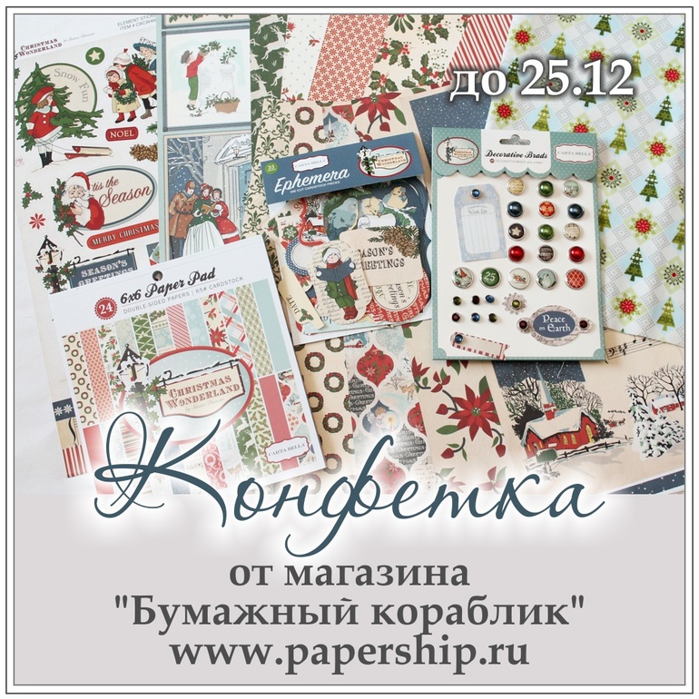 Объявления о конфетах, проведение МК и ярмарокВ магазине «Бумажный кораблик» - полный набор материалов новогодней тематики от Carta Bella.