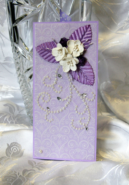 ЛИЛОВЫЙ конверт для денег, сделан по заказу на свадьбу. обязательно присутствие жемчуга и лилово-белой цветовой гаммы.