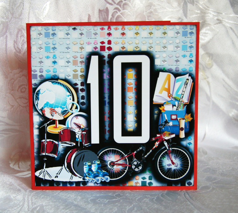 10 ЛЕТ открытка сделана по заказу, на ней отображены множество увлечений и занятий ребенка.