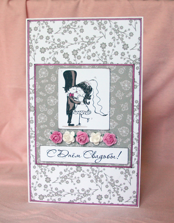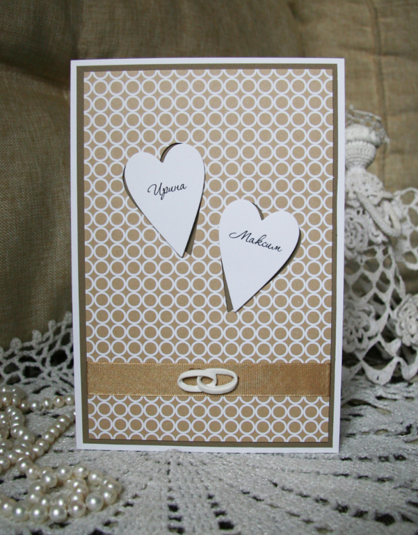 СВАДЕБНАЯ открытка сделана по заказу, и из пожеланий были сдержанные цвета и имена молодых