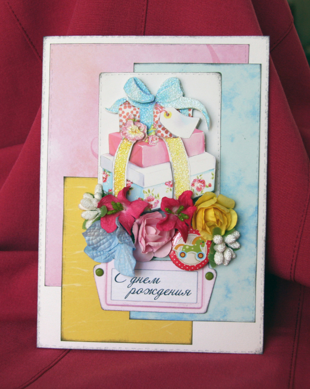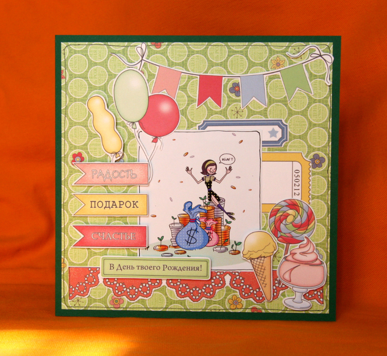 РАДОСТЬ, ПОДАРОК И СЧАСТЬЕ. открытка сделана по заказу от кума куме. картинку и цветовую гамму выбирал заказчик