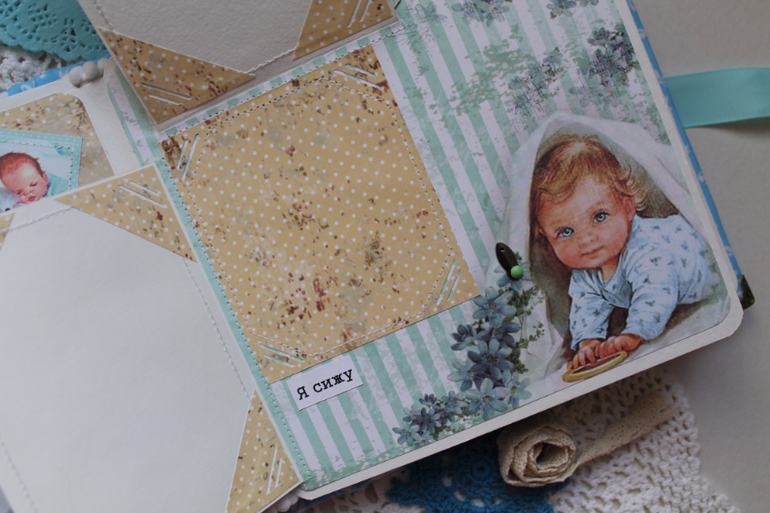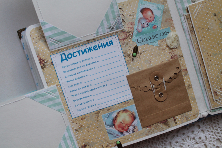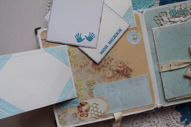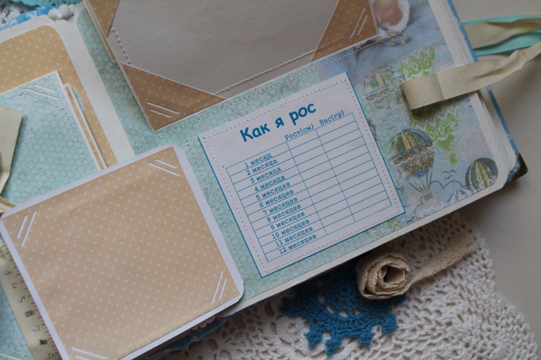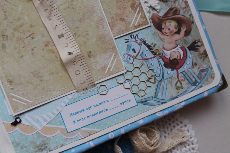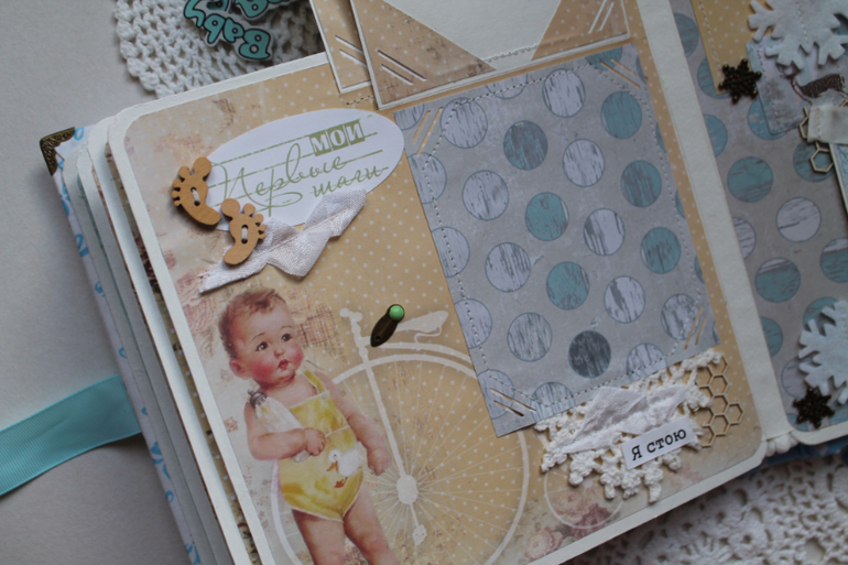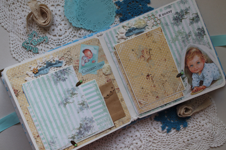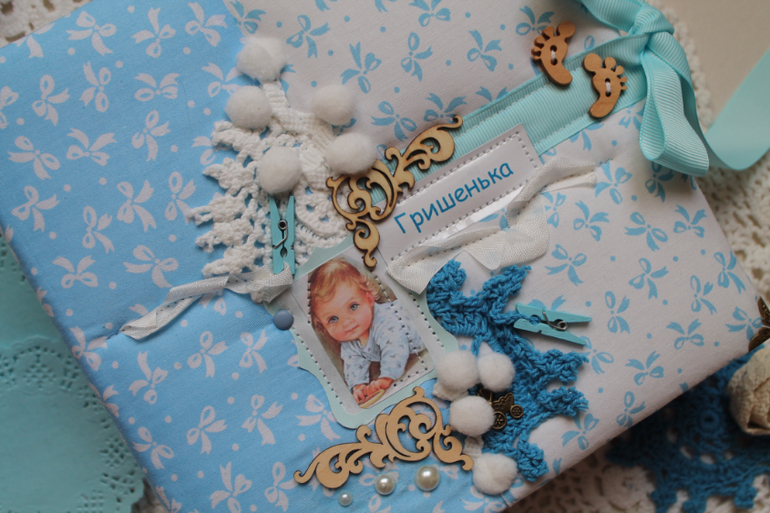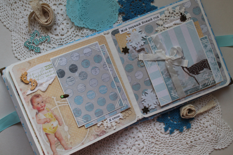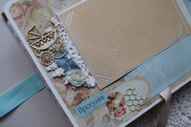 Альбомы ДетскиеЯ с очередным детским альбомчиком первого года жизни,этакой мальчуковой нежнятинкой,теперь для Гришеньки,наконец-то мои руки добрались до бумаги Корица,прям очень мне нравится онаВ мягкой хлопковой обложке,содержит таблицы:рост-вес,основные даты появления зубиков,достижения,меат для отпечатка ручки и ножки,конвертик для срезанного локона и снимков УЗИ,а также места для маминых заметок.Формат альбома 20 на 20 см,5 разворотов (10 страниц),рассчитан на 45 фотографий