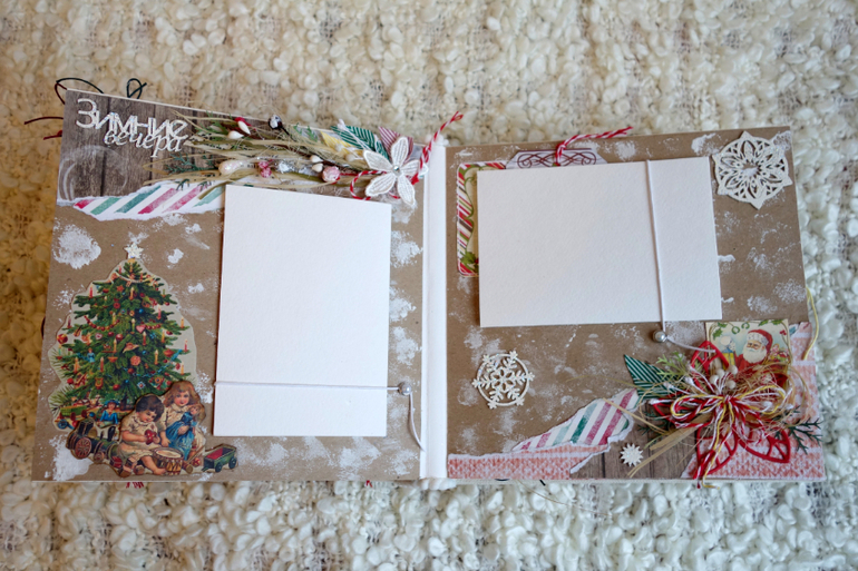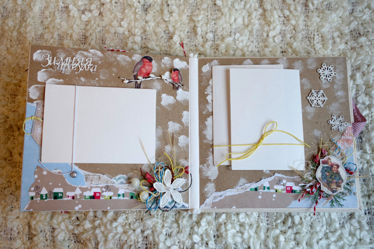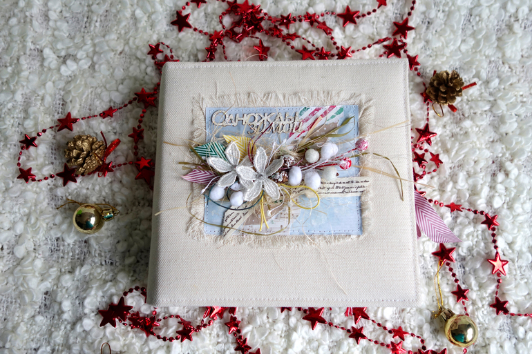 Альбомы других категорийВсем привет . Я сегодня хочу вам показать свой новогодний , зимний альбом. Альбом для теплых семейных фото , для лучших моментов любимого праздника и новогодних каникул.Размер альбома 20х20 см , 5 разворотов , вмещает 36 фото 9х13. В альбоме крафтовые листы , обложка 100% хлопок, использовала много натуральных декоративных элементов - рафия , сизаль , колоски , шишки, структурная паста с эффектом снега.