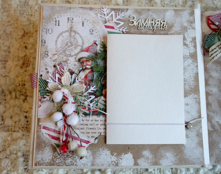 Красивый альбом, такой насыщенно новогодний. Я все тереблю бумажку флеровскую, так она мне нравится! С крафтом она идеальна!