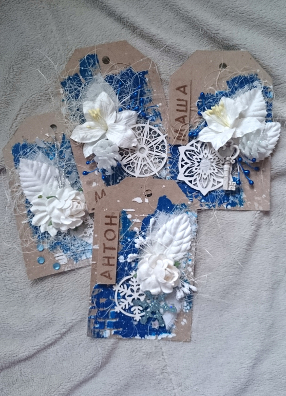 Игрушки новогодние.( Большую часть игрух у меня разобрали,поэтому на фото их мало).Тэги для детей,мужа и сестры. И блокнот-альбом( уже начала его заполнять)))