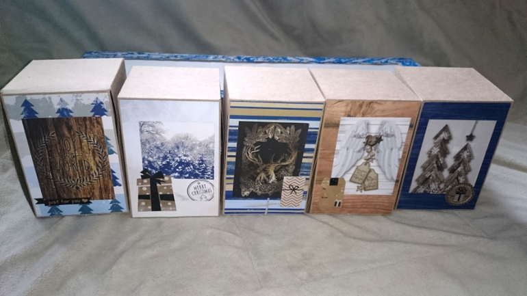 Сделала небольшой адвент на пять коробочек( по коробочке в неделю), особо украшать короб не стала,просто краски и немного текстурной пасты. Коробочки многоразовые.