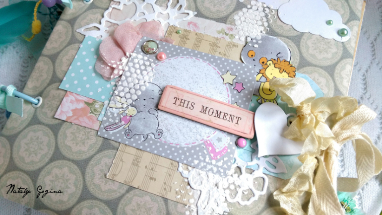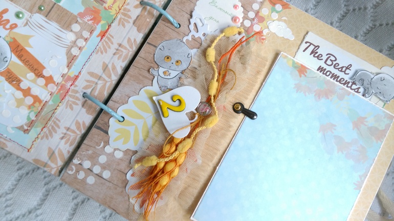 Альбом форматом 20×20 на колечках, на 10 стр, каждая страничка для каждого месяца беременности и стр. с колажиком. А еще альбом разбит по сезонам.